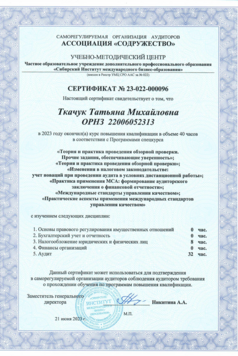 Сертификат аудитора Ткачук Т.М. о повышении квалификации 2023г.