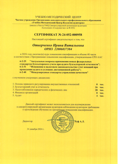 Сертификат аудитора Отверченко И. В. о повышении квалификации 2024г.