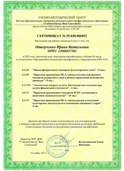 Сертификат аудитора Отверченко И.В. о повышении квалификации 2021г.