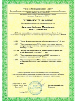 Сертификат аудитора Куликовой Л.М. о повышении квалификации 2025г.