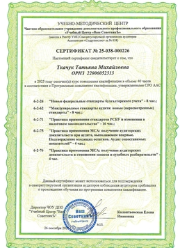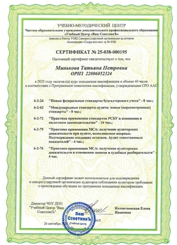 Сертификат аудитора Миньковой Т.П. о повышении квалификации 2025г.