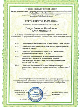 Сертификат аудитора Ткачук Т.М. о повышении квалификации 2025г.
